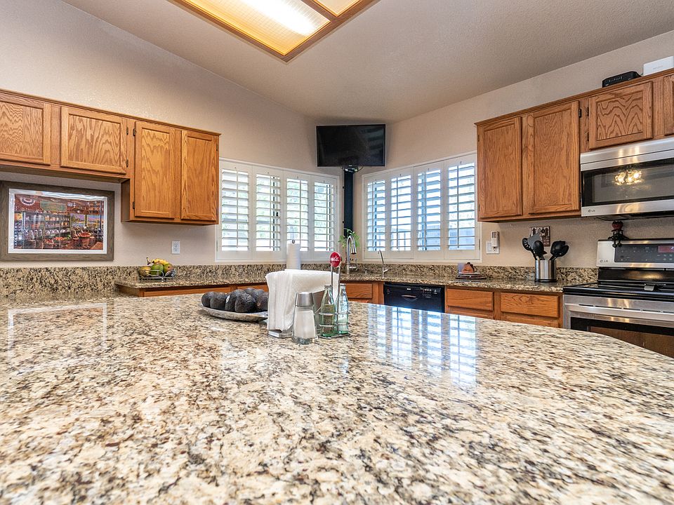 - Kitchen Features: Kitchen Island, Dishwasher, Disposal, Pantry, Granite Countertops, Built-in Microwave, Range/Oven Elec, Reverse Osmosis