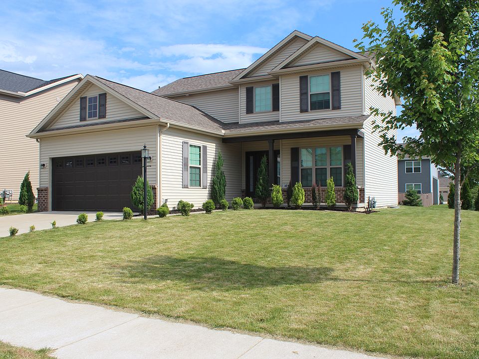 Gorgeous 3 BR, 2.5 bath North Facing Dunlap home situated on great corner lot within walking distance to new elementary school! New like condition resulting from excellent maintenance. Wonderful open floor plan w/ fireplaced family room, main floor den w/ French doors and gorgeous kitchen w/ breakfast bar island, SS appliances & sliders to deck. Master suite complete with walk-in closet & private bath w/ sep shower, WP tub and double sinks. Convenient upper level laundry room. Spacious rec room in finished LL. 16x16 deck and 10x10 stone paver patio overlook nice backyard- great place to relax.