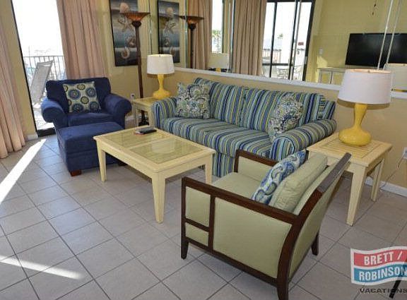 First floor condo with larger balcony. View of Perdido Pass, a favorite in the area cannot be duplicated. Only 2bedroom for sale in building. Never wait on an elevator, just a few steps to your condo without the crowds in this low density building. The unit has high ceilings making it bright & airy. Nice furnishings, exceptionally clean & well maintained. Across street from restaurants & shopping Brokered And Advertised By: Brett R/E Robinson Dev OB Listing Agent: Kathleen Lindley