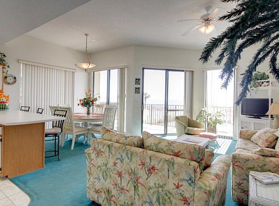 Spacious and beautiful east corner unit with large wrap-around Gulf Front balconies with nice Gulf views. Unit is immaculate with nice furnishings. TALL 10' CEILINGS. Located on upper lobby level, not beach level. Walk right to unit from front door! Master bath features large Jacuzzi tub! All bedrooms are spacious. Master has large walk-in closet & private balcony.