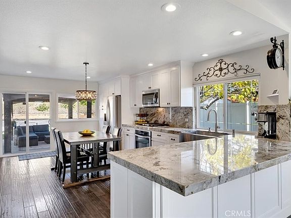Welcome to this stunning single-story detached home, situated on a larger than average lot for the neighborhood, boasting 7995 sqft. With 3 bedrooms, 2 bathrooms, and 1195 sqft of living space, this home is perfect for those seeking a peaceful and spacious retreat. As you approach the property, you'll immediately notice the charming front courtyard, perfect for enjoying your morning coffee or watching the sunset in the evening. Upon entering the home, you'll be greeted by an open floor plan design, which seamlessly connects the living, dining, and kitchen areas. The remodeled kitchen is a chef's dream, featuring granite counters, recessed lighting, and upgraded appliances. The bedrooms, bathrooms, hallway, and kitchen feature crown molding, adding a touch of elegance to the space. The yard of this home is truly a nature lover's paradise, attracting butterflies and many different species of birds. You'll love spending time on the large patio, which is perfect for entertaining guests. The yard also features a mature shade tree, providing a tranquil and relaxing atmosphere. The home is located on a corner lot at the beginning of a small cul-de-sac, offering privacy and a sense of community. In addition, the property features an upgraded fence, providing an additional layer of privacy. For those warm summer days, you'll appreciate the central air conditioning and ceiling fans in the bedrooms. The upgraded bathrooms offer a spa-like experience, and the wood floors add warmth and sophistication to the space. If you're looking for stunning sunset views, head up to the viewing deck in the backyard. The 2 car attached garage with direct access is an added convenience, providing easy access to the home. This home also enjoys access to Lake Mission Viejo, located within 2 miles, providing ample opportunities for outdoor recreation and relaxation. Don't miss your chance to own this beautiful property, perfect for those seeking a peaceful and spacious retreat.