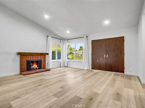 Welcome to 27122 Valleymont Road — a charming single-story cottage-style home featuring 3 bedrooms, 2 baths, 1,069 sq ft of living space on a 4,914 sq ft lot, nestled in the scenic hills of Lake Forest’s desirable Wind Rows community. From the moment you arrive, you’ll be captivated by its freshly painted exterior, lush greenery, and brick & wood planters framing the front walkway. The inviting double-door entry opens to a bright living room filled with natural light and centered around a classic brick fireplace, perfect for cozy evenings or relaxing with family. This beautifully maintained home has been tastefully remodeled, blending modern finishes with timeless character. The gourmet kitchen showcases white shaker cabinetry, quartz countertops, nickel hardware, and stainless-steel appliances, plus smart storage, including pull-out spice racks, lazy susans, and soft-close drawers. The kitchen opens directly to the dining area, and a sliding glass door leads to the serene backyard for easy indoor-outdoor living. The primary suite offers a peaceful retreat with a walk-in closet with mirrored doors and an ensuite bath featuring a freshly painted vanity with new quartz countertop, nickel fixtures, updated lighting, and a shower-in-tub. Two additional bedrooms, all with new upgraded carpet, share a beautifully remodeled hall bath with a white shaker vanity, quartz counter, black matte hardware, and a rainfall showerhead. Interior highlights include new luxury vinyl plank flooring in the living room and hall; tile in the kitchen and baths; new carpet in the bedrooms; new windows throughout with custom window coverings; new interior paint; new baseboards; recessed lighting; and updated light fixtures. The A/C unit, and new whole house fan provide peace of mind, and the attached two-car garage includes built-in cabinetry and laundry hookups. Step outside to a private backyard sanctuary with two modern deck areas, a custom bench, lush landscaping, and beautiful views of the adjacent park and surrounding hills — ideal for morning coffee, weekend barbecues, or peaceful evenings outdoors. Located near Vintage Park, with convenient access to the 241 Toll Road, Saddleback Valley Unified schools, low taxes, and no Mello-Roos, all close to shopping, dining, and recreation.