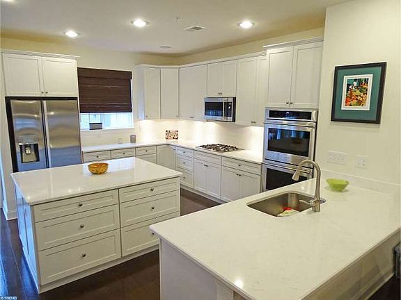 Fifteen months NEW!!!!! Commuters delight! Totally neutral. Foyer with wood flooring, steps to main level great room with 9' ceilings, wood flooring. Open and inviting into the upgraded kitchen with quartz counter tops,center island with electrical outlets, sliding shelves in cabinets, Monogram GE series double wall over, microwave and gas cook top, under cabinet lighting, nickel faucet and deep stainless steel sink, large pantry, desk area with cabinets and internet hookup. Recess lights through out the main level. Transom window above sliders to open deck for entertaining. Lower level family room with sliders to back yard and access to two car garage. Laundry is found on the upper level along with three bedrooms, main bedroom with tray ceiling and bath with frameless shower door, quartz counter top on upgraded cabinet. Cable hookups in all bedrooms and two hookups in living room. Powder room fixtures are upgraded. Put this property on your list to see!!!!!!!