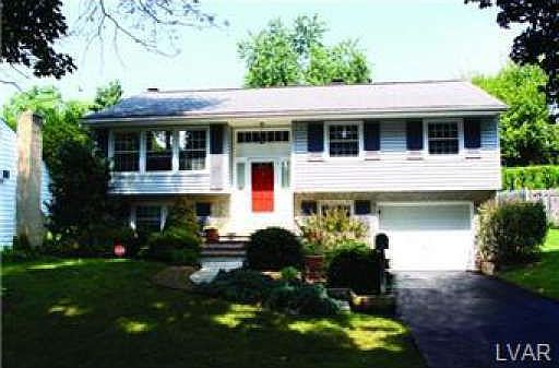 A great home in a fantastic neighborhood with moravian style tiles in foyer and hardwood floors. The upper level features an open concept for living room, dining room & updated kitchen with corian counters. Split level style with 3 bedrooms on top floor. Lower level has 1 bedroom, spacious family room, 1/2 bathroom, utility room, & over sized 1 car garage. This home has a fabulous sun room, leading to a large back yard. 5 minutes from Wegmans, Target, Rt 22, I-78 & Rt 309. Make it your dream home with your personal touch.