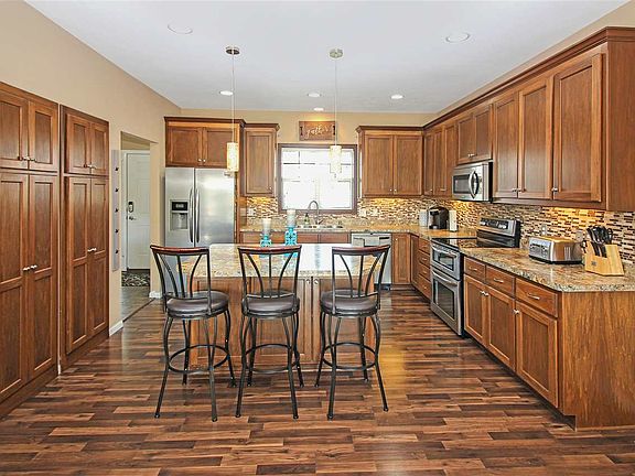 Don't miss your chance at this unique four level home in the prestigious Eagles Landing subdivision! Upon entering, you will love the open layout featuring a massive kitchen with tons of cabinetry (slow close doors!), glass backsplash, under cabinet lighting, stainless appliances (double oven!), super sized island and pantry cabinets with cleverly designed broom storage! The dining room is set up for entertainment and opens to your 16x15 deck and backyard oasis! Privacy fenced, yard shed, and lush grass with sprinklers make this the perfect area to host a BBQ or let the kids run! Back inside, up a few stairs are three spacious bedrooms including the master with a walk-in closet and private bathroom. The third level of the home is the get-away with a super sized daylight family room, spacious laundry room w/ utility sink, and additional 3/4 bathroom. Down one more level is the fourth egress bedroom and an amazing bonus space with endless possibilities - 5th bedroom, home gym, playroom, third family room, etc.! The garage is completely finished with an epoxy floor, painted walls, floor drain, heat and newer cabinets which are negotiable. This is truly one you don't want to miss.