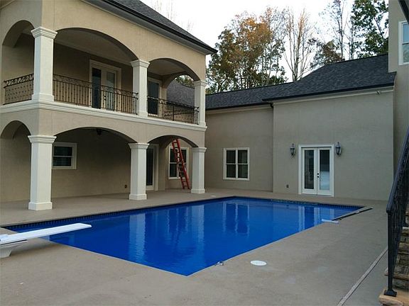 ONE OF A KIND !! ENTERTAINER'S DREAM HOUSE !! Estate size mansion on a very private lot. Lot is adjacent to 1500 + acres of Corp Property, running and biking trails plus horseback riding trails. This house is made for entertaining with an inground poo, wired movie theater, wine cellar closet, full size gym room, pool room/ bonus room, office, 5 car garage ( 3 single doors, 1 Double door w/ 2 story Boat garage or Camper. House can be made into 8 bedrooms. Travertine floors on main are heated. All bathrooms are travertine floors. Gourmet Kitchen w/highend appliances