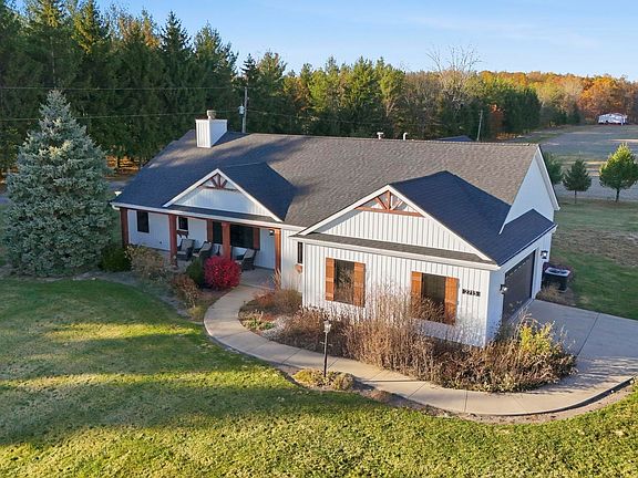**Open House 11/09 1-3PM** Modern Luxury Meets Country Living. This stunning, fully renovated modern home sits on nearly three-quarters of an acre, offering the perfect blend of style, comfort, and smart technology. Featuring a spacious yard and attached two-car garage, this home showcases high-end finishes and thoughtful design from the inside out. Step inside to an open, extended floor plan with all-new paint and luxury vinyl plank flooring throughout. The show-stopping kitchen includes a massive island with black granite countertops, stainless steel LG ThinQ smart appliances, and an additional mini fridge tucked beneath the island. The open dining area highlights one of two fireplaces, adding warmth and character. The living room boasts vaulted ceilings, a second built-in fireplace, and an inviting layout perfect for entertaining or relaxing. Every window has been replaced with sleek, black-finish Andersen windows that complement the home’s modern aesthetic. Each bedroom is generously sized, with two featuring newly tiled showers and large walk-in closets for his-and-hers convenience. The entire home is fully equipped as a smart home, allowing you to control nearly everything with the touch of a button. Enjoy peace of mind with a brand-new roof, furnace, and central air system. Outside, the arched covered patio with stamped concrete extends over half the property and includes a gas line for future outdoor kitchen possibilities ideal for gatherings or unwinding in the peaceful country setting. This home is truly a one-of-a-kind modern retreat with every upgrade imaginable.