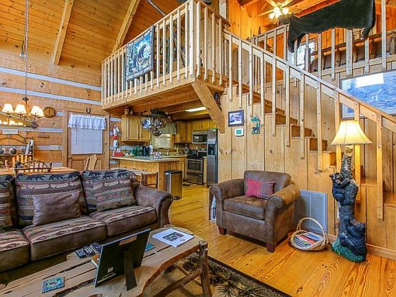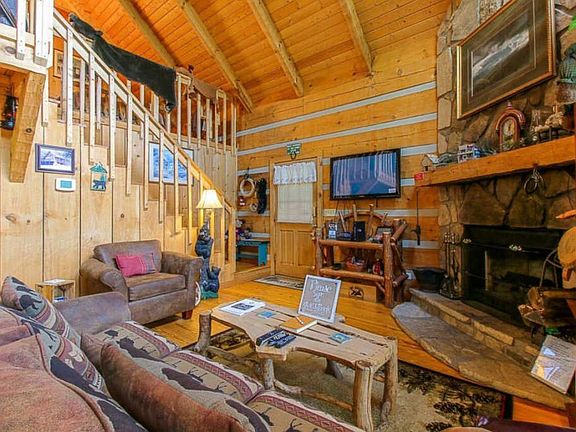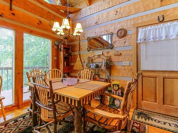 This Smoky Mtn Cabin is super duper maintained and located within 2.5 miles from red light #3 in Pigeon Forge! Also provides a large paved parking spaces, privacy, fully furnished with quality furniture, hot tub, grill, two story stone wood burning fireplace, Stainless Appliances, pine hardwood floors,CITY WATER & SEWER, master on main, and just simply a very nice place. Exterior has metal roof installed in 2012, HVAC 4 years old. This is a CLASS ACT CABIN! Seller has rented cabin themselves and has repeat business. Home can be rental investment or your own personal mountain getaway.