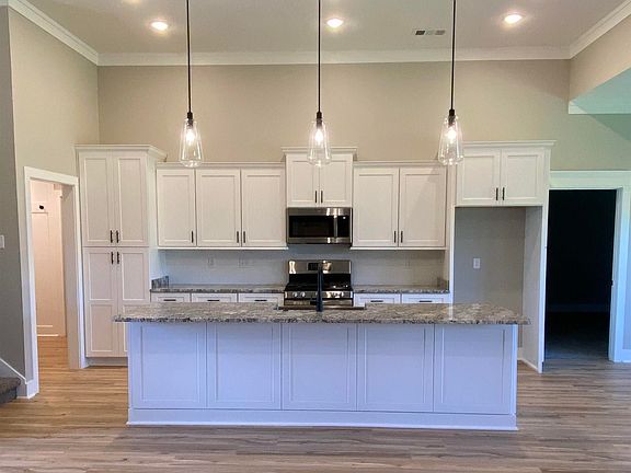 This beautiful home is located in the Brookland School District and is serviced by City Water and Light. The gorgeous floor plan is 5 bedroom, 2.5 bath and has a bonus room on the second level, the house boasts 12ft raised ceilings in the great room, kitchen, and breakfast area. The exterior is covered with all brick and multiple windows surrounding the breakfast area allowing for plenty of natural light. Tray ceilings are found in the master bedroom, the master bath features double sinks, free standing soaker tub, a custom tile shower with a glass shower door. Hardwood flooring is found in the great room and hallway, tile in the laundry room, kitchen, and bathrooms. Carpeting can be found in all bedrooms and the bonus room. Additional features include crown molding, ceiling fans, prefinished wood shelving units, granite countertops in the kitchen and bathroom, tile backsplash lighting in the kitchen, an electric fireplace, a tankless hot water heater and foam insulation.