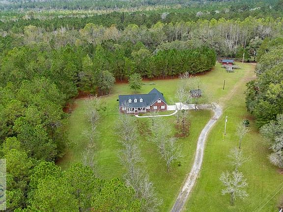 Completely updated low country full brick farmhouse on 7 acres of peaceful paradise. Roof was replaced in 2022. New spray foam insulation and dormer windows in the walk-in attic. New vapor barrier and spray foam insulation under the whole crawl space. New insulated garage doors, hot water heater, and whole house water softener. In 2023, all new LVP flooring installed throughout the entire home, and the interior was painted top to bottom (walls, trim, and baseboards.) Almost all the light fixtures were updated and the kitchen boasts gorgeous new granite counter tops and stainless steel appliances. Single story living with room to expand up. There's an office upstairs and a full floor of attic space. From the front and back rocking chair covered porches, you'll enjoy sunrises, wildlife, and the wind rustling through your 26 pecan trees. Large detached workshop, a pole barn, and well house/ plus two wells full of possibilities. This is the homestead of your country living dreams.