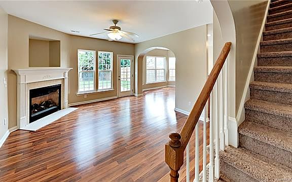 Lovely two story home, waiting for it's new owners! New laminate wood flooring and beautiful archways in common living areas. Fireplace in living room. Kitchen boasts warm stained cabinets, granite counter tops, and stainless steel appliances. Dining area adjacent to dining room has bay window that overlooks back yard. Master bedroom features includes vaulted ceilings, and attached en suite bathroom with dual sinks, garden tub and walk in shower. Additional bedrooms are spacious; with bathroom attached to one. Private, fenced in backyard with patio slab! Beautiful home!