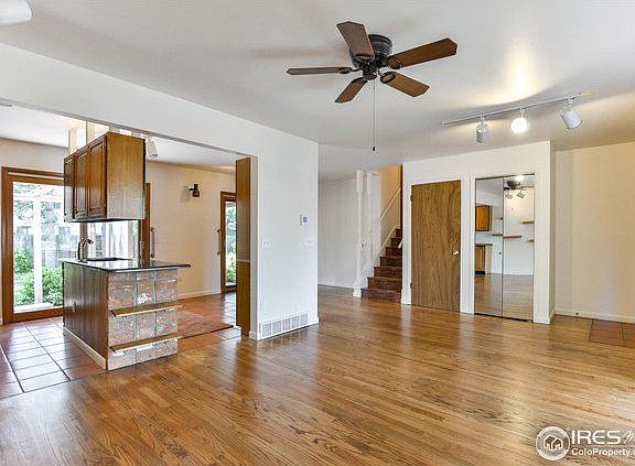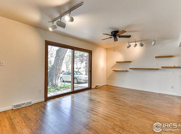 Freshly painted inside & out, Newer HVAC & Roof, recent driveway replacement, Screened-in back porch plus concrete Patio, Shaded back Yard, 2 storage sheds, updated main bath & shower, Hard surface counters in Kitchen & main bath. 4 sliding glass doors, front patio, single car garage. Quiet neighborhood in the center of Fort Collins, close to the Max & shopping. This home is ready for you to move in to.