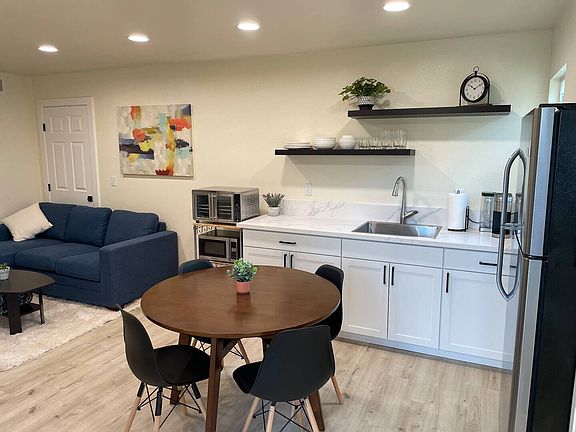 Newly renovated housing in Clovis including two furnished bedrooms, an office (or bedroom), a kitchenette, dining area, and updated bathroom. This space is ideal for a traveling professional as it is fully furnished and all utilities are included (wifi, electric, gas, water, sewer). Come stay for a month or more in this quiet Clovis loft nestled on the East side of Clovis toward the foothills. Enjoy mornings or evenings on the large back patio with a well kept grass backyard. UTILITIES INCLUDED. Owner pays for all utilities. No pets and no smoking please.