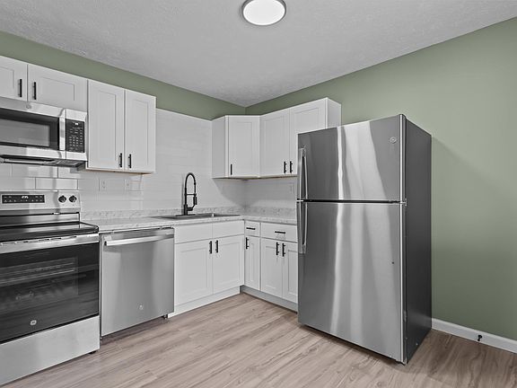 Recently renovated 4-bedroom, 1.5-bath ranch offering 1,120 sq ft of living space and a 2-car detached garage. This updated home features a new kitchen with modern counters, stainless steel appliances, and a stylish backsplash. Both bathrooms have been refreshed with a new tub and surround, vanities, and fixtures. The entire home has been freshly painted and finished with new luxury vinyl plank flooring and updated lighting throughout. This home also features central air and vinyl windows. Perfect starter home or investment!