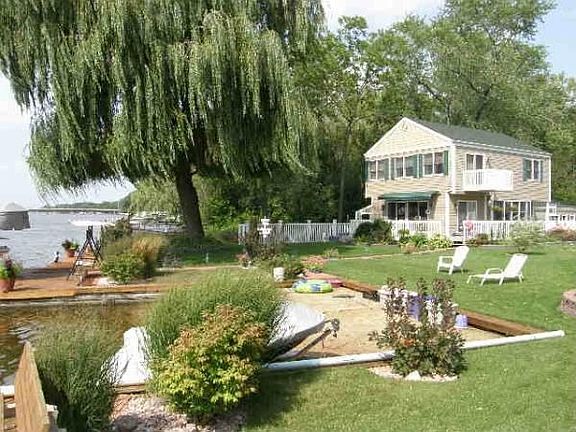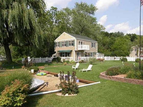 FANTASTIC THREE BEDROOM, THREE BATHROOM HOME ON DOUBLE LOT AT THE BEST LOCATION ON THE FOX RIVER NORTH OF THE LOCKS IN McHENRY. 125 FEET OF FOX RIVER FRONTAGE INCLUDING SAND BEACH AREA FOR EXCELLENT SWIMMING. BEAUTIFUL PROFESSIONALLY LANDSCAPED PROPERTY. HOME IS IN PERFECT CONDITION. NEW KITCHEN IN 2008 WITH GRANITE COUNTER TOPS, MAPLE CABINETS, STAINLESS STEEL APPLIANCES, CENTER ISLAND WITH FABULOUS CUSTOM WOOD CHECKER BOARD BUTCHER BLOCK TOP AND GORGEOUS COPPER SINK. DINING AREA. LIVING ROO...