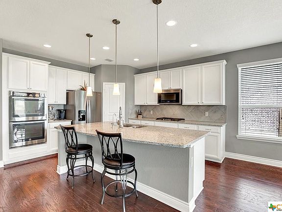 LIVE LARGE in this 4 bedroom/3 bath home with both Game and Media rooms! Enjoy family entertainment and BBQ nights in this very PRIVATE backyard which backs to a field. Need to cool off? The neighborhood amenity center with pool and splashpad are currently under construction just around the corner. This home offers open concept living with a gas kitchen, granite countertops and stainless appliances. Notice the 2 bedrooms downstairs, easily providing for a private guest or in-law suite in addition to a spacious master suite. Two more bedrooms, game room and media room are located upstairs. Garage is oversized with room for extra storage or golf-car and plumbed for a water softener. NBISD schools.