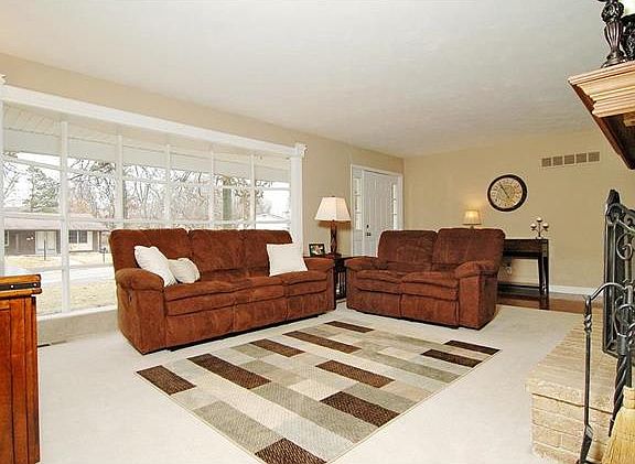 NEW PRICE! Beautifully decorated large ranch sitting on over an acre of park-like setting! This home is a rare find and features a spacious floor plan, large living room with floor to ceiling brick fireplace, hardwood floors in entry, kitchen and family room, ceramic tile in bathrooms, adult height vanities, main floor laundry, enclosed sun porch off family room that overlooks an amazing private backyard and patio area, over-sized side entry 2 car garage with room for a workshop and full brick front. The home is tastefully decorated, perfectly located and close to everything while still providing that private oasis you want! Seller is offering a 1 year home warranty.