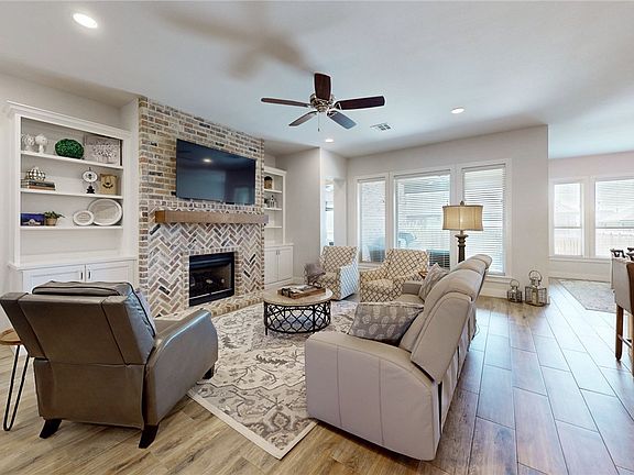 Welcome to this beautifully maintained 4-bedroom, 3-bathroom home in the highly sought-after Castlegate II neighborhood of College Station. Built by Classic Homes by Mariott, this home features an open-concept layout with wood-look tile flooring in the main areas and new carpet installed in January 2025 in the bedrooms. The spacious living room boasts a stunning floor-to-ceiling brick fireplace and large windows that fill the space with natural light. The kitchen offers stainless steel appliances, a large island, abundant counter space, and the refrigerator can convey with the home. A versatile bonus room provides the perfect space for a home office, playroom, or additional living area. The 3-car garage offers ample parking and storage, a rare find in this neighborhood. The primary suite includes a generous walk-in closet and a spa-like bathroom. Enjoy outdoor living on the large covered back porch, complete with a gas stub out ready for your grill. This home is in excellent condition and move-in ready.