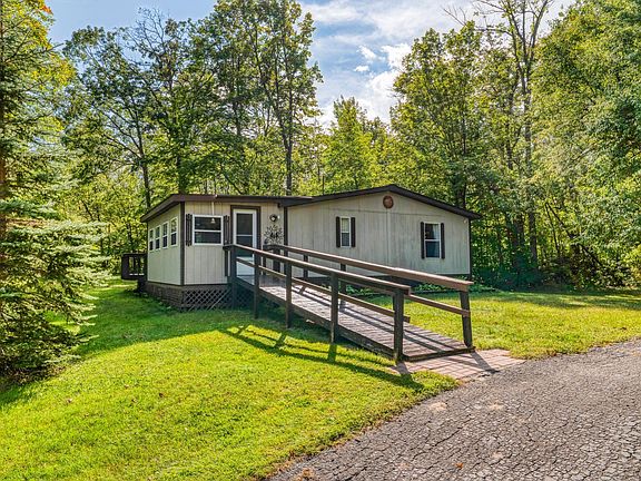 Nice private location only minutes from town. Manufactured 3 Bedroom home, 2 full Bathrooms, large enclosed porch, double garage, tarred driveway all on 4.3 acre lot. Schedule your showing today!