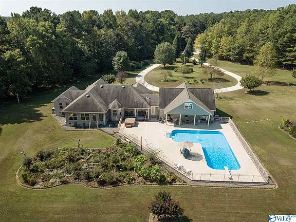 Lovely 3BR/2.5BA full brick home with beautiful in ground pool and 45 acres. House is in a very private setting.2 detached workshops, 30x90 and 35x40 with electricity and water.House features a living room w/vaulted ceiling and gas log fireplace, formal dining room, study w/fireplace, sun room and a large upstairs bonus room. Custom cabinetry in over sized master closet and master bedroom has trey ceiling and recessed lighting. No carpet downstairs..all beautiful hardwood flooring .Enjoy the beautiful pool in the summer and the hot tub in the winter or just sit on your back porch and enjoy the view.Whole house fan located in hallway. 3 car garage w/above ground factory storm shelter.