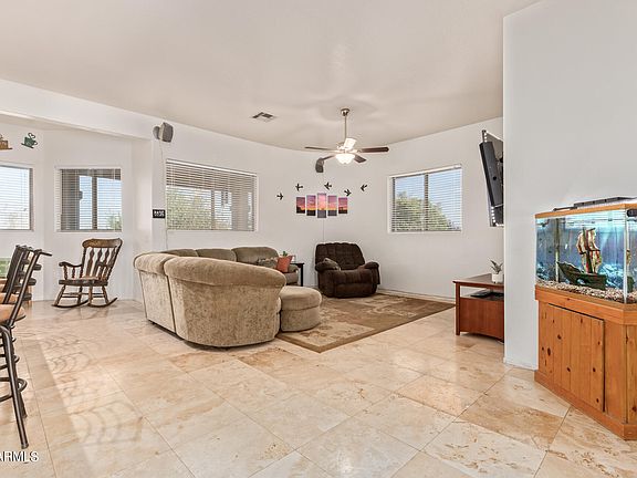 Wow! This breathtaking 1.2-acre horse property expertly combines the best of rural living w/ modern conveniences. There's the 3 car garage plus a drive-through RV garage & RV gate. Garage is insulated & climate controlled. The great room boasts high ceilings, durable tile flooring, & abundant natural light. The chef's kitchen comes w/ granite counters, recessed lighting, built-in appliances, raised panel cabinets w/ crown moulding, a pantry, & a two-tier peninsula w/a breakfast bar. You'll also find a flexible den ideal for an office. Double doors lead you to the main bedroom offering backyard access & a private bathroom w/ dual sinks & a generous walk-in closet. The vast backyard displays a covered patio, natural turf, stunning mountain views, & plenty of space for horse accommodating. This value won't disappoint!