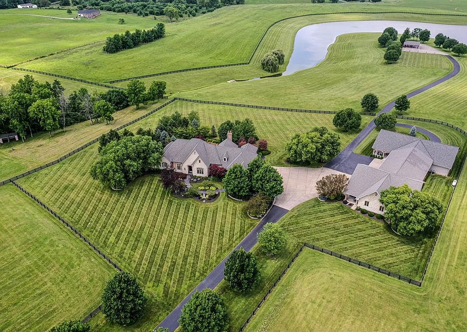 Beautiful estate on 95 rolling acres/woods. Gated ent/tree-lined drive. Beautiful home with the finest details: expansive rooms: custom tile, stone, hardwood, built ins. Master suite w/ dbl vanities and dual, walk in closets. Gourmet kitchen. Gunite heated pool+lush landscaping. 11-stall horse barn+2 barns. Gated pastures. Workshop. Picnic shelter with fireplace and R/V hookups, overlooks lake. 2.5 miles of four-board fencing. Caretaker home. 3-car att gar+5 garages. Party building: bar/kit/bath