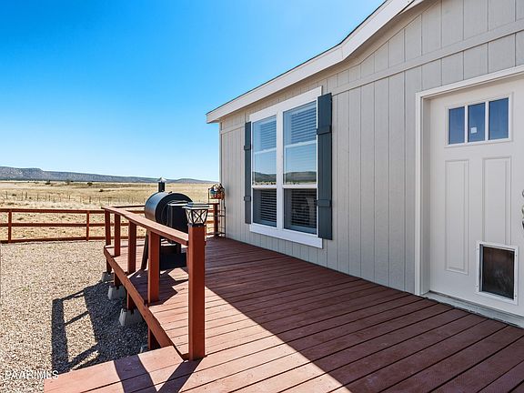 Welcome to this stunning 5.28 acre property offering the perfect blend of privacy, comfort, and modern amenities. This new manufactured home is move-in ready and features an open-concept layout with 3 spacious bedrooms and 2 bathrooms.The heart of the home is a modern kitchen with granite countertops, upgraded cabinetry, and a walk-in pantry. Enjoy contemporary finishes and upgraded interiors throughout, making this home both stylish and functional. Step outside to beautifully landscaped grounds and a large deck-perfect for relaxing or hosting gatherings while taking in the scenic views. The property boasts a state-of-the-art water filtration system and a high-producing private well. With plenty of outdoor living space, this turnkey property is ideal for those seeking a rural lifestyle