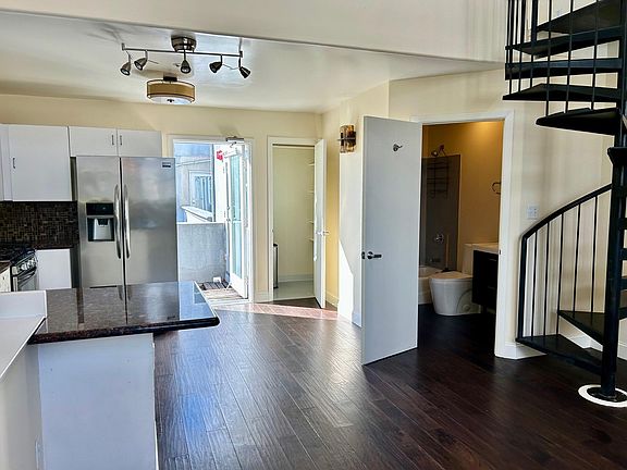 Large live work loft space spanning over 3 1/2 floors in trendy West Berkeley. A seven-unit loft building, mostly owner occupied, quiet and respectful with a great location. Walking distance to Berkeley Bowl West, lots of fun restaurants, bars and easy access to the highways and Ashby BART. Very easy and flat walking distance to the Berkeley Aquatic Park, and bike paths along the bay. 15-minute stroll to shopping on 4th Street. The loft is a 2-bedroom / 2 bath. Recently painted, modern appliances, washer and dryer. One gated parking place. Totaling 1900 sq ft. Street level spaces are zoned for commercial use by the city of Berkeley. Great spaces that add a lot of flexibility - but not for sleeping. The first floor offers two good-sized office spaces that are separate. There is also a wet bar space. Perfect for an art studio, remote office, workout facilities, yoga studio, photography studio, several of the other units are occupied by architects, therapists, and financial planners. It is directly on 9th St. with a large, bright picture window and easy access to the parking lot and direct street access. There is a bathroom on the 1st. floor that serves the buildings office spaces. Second floor is the master bedroom floor through and very spacious at about 600 ft. . Includes an full bathroom with shower only, though intimate it has been recently updated with new tile flooring and a new vanity and a cabinet for storage. The bedroom is carpeted, just deep cleaned with very large windows offering great daylight and boasts 10 ft ceilings. There are two large closets plus a large utility closet that houses the washer/dryer, hot water heater and offers extra storage. Third floor, the living space; loft style, open plan kitchen, living/dining, and bathroom. Massive windows, looking at the Berkeley Hills and all glass kitchen door facing the bay. Ceilings are 20 feet high. Kitchen has granite countertops, glass back splash, 5 burner gas range and newer side by side stainless refrigerator. Bonus pantry closet for tons of storage, newer hardwood floors throughout this floor. Updated lighting, chandelier, and sconces. There is a spiral metal black staircase that leads to the second bedroom that is open to the living space. That bedroom has a large, mirrored closet and a window with the view of the bay. This bedroom is carpeted and that was just deep cleaned. There are common decks off the second and third floors for easy outdoor access. Parking is gated and the loft includes one dedicated spot. Street parking is not that difficult in this area. It is a fun and large space recently painted, new toilets, carpets cleaned, updated modern appliances, new lighting throughout. Again, extremely flexible, there's a lot of ways to use the space 1 tenant used the street and second level as office space and lived upstairs in the one-bedroom loft. All the floors are able to be separated individually and have their own access if you wanted making it very versatile to use as your heart desires. General lease terms: a year-long lease, then month to month First month's rent and full month's deposit required Credit report, an employment check and landlord references requested. Property is vacant and ready. Pets - we are open for a discussion Contact: Brian Gipson Initial lease is one year, first month and full month security deposit required. Credit report, employment verification, and the landlord references Preferred. Does not include electricity or gas.