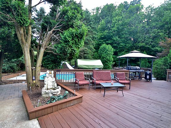 Nestled on 3+private, picturesque acres. Upgraded KIT w/ GRANITE counters & Oak cabinets. Sunken FR w/brick profile FP & dual tray ceilings. Sun Rm w/expansive bar & walls of windows. Scenic view from LR picture window. Upgraded baths; spacious bedrooms.. LL Rec & poss. 5th BR.Private, Lush grounds, paver patio & hot tub. Heated auto salt water system pool w/slide; det garage & shed. Must See!