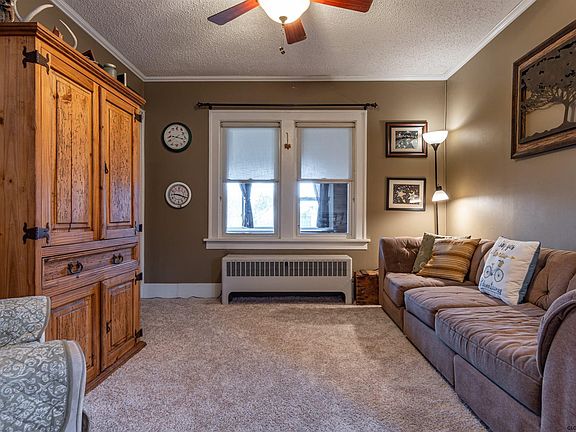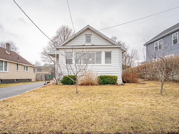 Updated and Affordable ~ always a winning combination. New roof 2019, new boiler 2013. Kitchen has tile floor, bead board, granite counter, refrigerator & electric range. Freshly painted dining room with wood floor. Living room features fan light, wall to wall carpet over wood floor, crown molding. Two first floor bedrooms with wall to wall carpet over wood floors. Second floor bedroom and sitting area large closet and eave storage. Bathroom has tile floor, bead board, newer vanity. Enclosed front porch. Game room in basement. Great back yard with patio and pergola will be a hit this summer. One car, detached garage. Other updates: garage roof, electric panel, windows, kitchen, bath, driveway, patio ~ approximately 10 years old. Two fruit producing dwarf apple trees & established garden