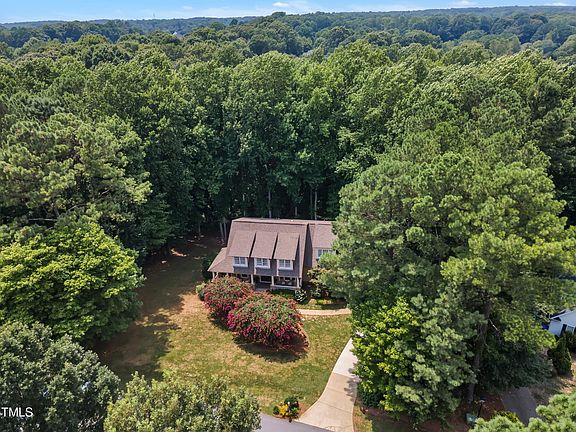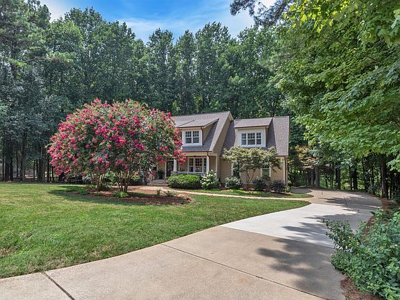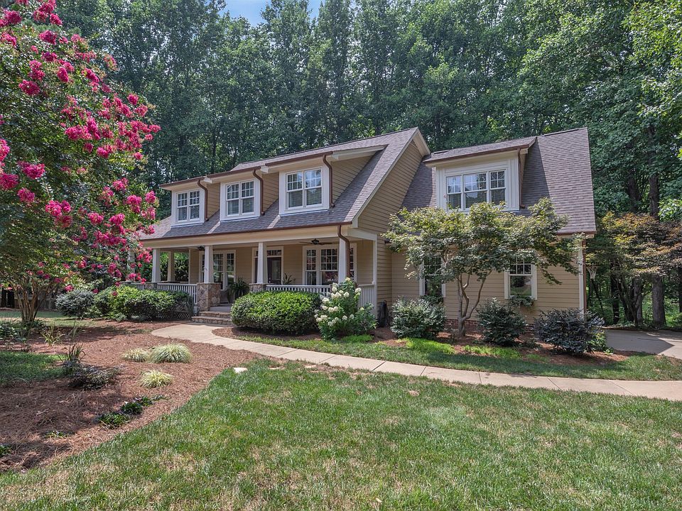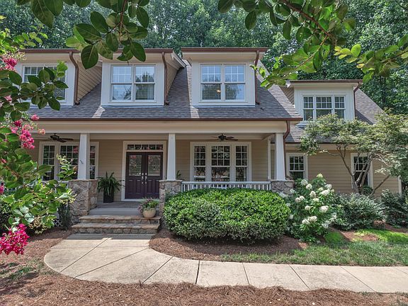 Discover this charming, custom-built basement home, privately situated on a lushly wooded lot, offering both tranquility and elegance. Showcasing quality construction and exquisite millwork throughout, this residence is nestled in a sought-after pool community, conveniently located just minutes from shopping, dining, and the new 540 section. The home features a transitional design, highlighted by a spacious kitchen with a center island, quartz countertops, and a casual dining area. The sun-filled family room, complete with a fireplace and built-ins, provides a warm and inviting atmosphere. On the first floor, an office with French doors offers a perfect workspace. Upstairs, the generous owner's suite and three additional bedrooms provide ample space for family and guests. A delightful 'jack and jill' play or study area adds to the home's functionality. The basement includes a recreation room and a guest suite with a full bath, ideal for entertaining. Relax on the screened porch with its durable decking and enjoy the serene surroundings. Don't miss this exceptional opportunity to own a truly unique and beautifully crafted home!