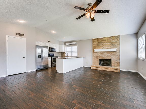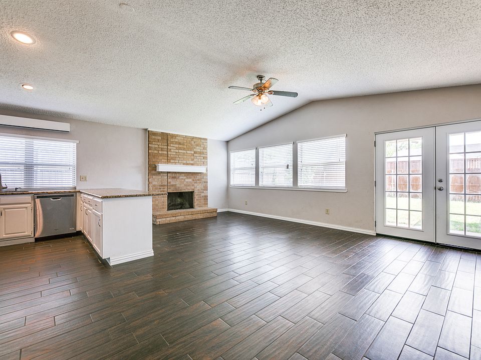 Step inside this beautifully updated single-family home in a quiet, sought-after North Garland neighborhood. Featuring an open-concept layout with soaring vaulted ceilings, a cozy fireplace, and wood-look ceramic tile floors throughout (no carpet!), this home is designed for both comfort and style. The kitchen shines with granite countertops, stainless steel appliances (fridge included), and plenty of space to cook and entertain. Retreat to the spacious primary suite with a tiled walk-in shower and large walk-in closet, or enjoy the private backyard - perfect for gatherings with family and friends. Additional highlights include a 2-car garage with alley access, ceiling fans in every room, and a dedicated laundry room with full-size washer & dryer included. Conveniently located minutes from PGBT 190, US-75, Firewheel Town Center, parks, shopping, and dining. Schedule your tour today!