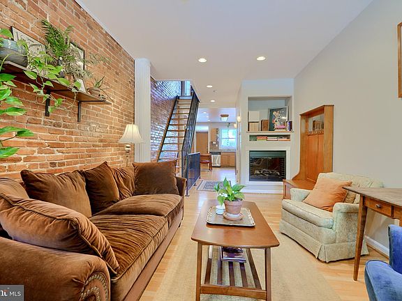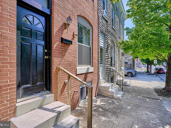 Sophisticated 2 BR 1.5 BA brick front Federal style townhouse just a few blocks from Patterson Park. Lots of classic Baltimore charm including marble steps, exposed interior brick walls, rear patio plus rooftop deck with views of the city. Main level has lovely hardwood flooring, exposed brick wall and recessed lighting throughout. Spacious living room has a fireplace. Eat-in kitchen has S.S. appliances, granite countertops and access to private outside brick paved patio. Half bath conveniently located between LR and kitchen. Upper level has 2 carpeted BRs, both with an exposed brick wall and one full bath off hallway. A floating staircase provides access to the cozy rooftop deck. Unfinished LL has washer and dryer and lots of space for storage. Close to lots of restaurants, shops, Johns Hopkins, downtown, etc., with easy access to I-95. This gorgeous home is move-in ready. Must see – won't last long!