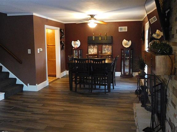 Fabulous family home! 2014 new kitchen: cabinets, sink, countertops, ceramic flooring, lighting and appliances. Ceramic, wood-like flooring in living room, dining room and hall (3 years). Fenced yard. Stacked stone wood burning fireplace. Sitting room off master bedroom. Step sown bonus room off one of the bedrooms. Rec room in lower level with full bath and brick fireplace. Basement fireplace as is (flue not working). Furnace 8 years old and water heater 2 years old.