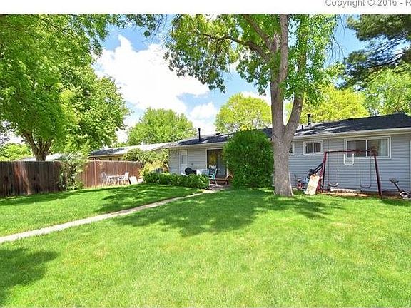 This charming ranch level home is in the desirable kittyhawk neighborhood just steps away from Nancy Lewis park. Property is all main level living with three bedrooms, two full baths, & one car attached garage with alley access. The fully fenced in back yard has gardens with an oversized patio. The front of the home has a covered front porch with some Pikes Peak Views situated on a quiet tree lined street. Enjoy brand new carpet with three good size bedrooms & closet space