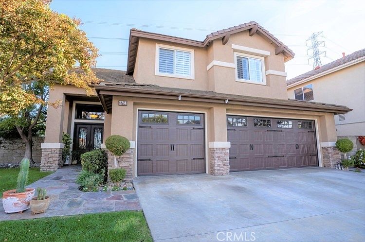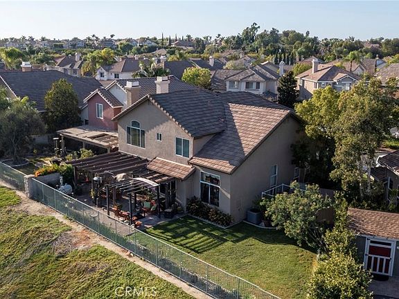 Beautiful home in the popular Belmont area with a pool sized lot and amazing views to the Newport Hills. Enter through the gorgeous custom iron double door entry to high cathedral ceilings in the Living Room and Formal Dining Room. The updated Kitchen features granite countertops with tile backsplash, stainless steel appliances, a large center island with seating, and breakfast nook. The kitchen is open to the Family Room which includes a gas heated fireplace. The downstairs boasts a bedroom/office, and bathroom with shower, perfect for guests. Upstairs you will find four additional spacious bedrooms. The upstairs bathroom features a dual sink vanity and separate water closet with tub/shower, perfect for larger families. The Primary Suite boasts cathedral ceilings, dual sink vanity, soaking tub, tiled shower, separate water closet and walk-in-closet. The backyard has a covered patio and open fence to enjoy the amazing views and cool evening breezes. Other key features include Plantation shutters in all bedrooms, indoor Laundry Room, 3 car garage with insulated roll up doors and multiple storage cabinets, a new 6' x 8' Tuff Shed in the backyard, and 4 ton A/C unit installed in 2017. Freeway close location with sought after schools.