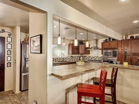 From the moment you see this exquisite home in the casa lindas neighborhood, you will fall in love. Acurved front driveway with 2 car garage accompanied by mature palm trees and landscaping. As you enter into this fully remodeled home, a cherry wood front door opens as youstep through into your forever home. 20 inch ceramic tile throughout, big open floor plan with a perfectly remodeled kitchen featuring cherry woodcabinets, corian countertops with tile backsplash, breakfast bar, and deep sink. Master Suite with french door entry, oversized walk-in shower, andwalk-in closet. Bedrooms are spacious and one has a California Closet. Guest bathroom with spa tub and dual granite sinks. French doors as you step into thebackyard with mature landscaping and pool. A truly remarkable home!