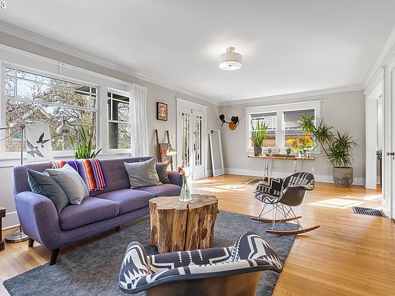 Uncommon opportunity in A+ Nob Hill/Alphabet District location! Perfectly situated between shops and dining on NW 23rd, hip spots on Thurman and the entry steps to Forest Park, this sun drenched bungalow is the perfect jewel box home to plant your roots. One level living with large basement to expand your living space or ADU potential! Driveway and detached garage w/ sweet stone paver patio perfect for watching the swifts swarm into the Chapman chimney. Classic bungalow details abound with gleaming hardwood floors, original wood burning fireplace, beautiful built-ins and sweet 1920s tile bathroom. [Home Energy Score = 6. HES Report at https://rpt.greenbuildingregistry.com/hes/OR10213569]