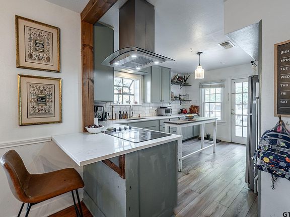 Multiple Offers on this property, cutting off showings and offers at 5pm on 11/19. This charming cottage is not only adorable but also conveniently located close to everything Tyler has to offer. Recently remodeled, the kitchen and primary bathroom offer a fresh and modern feel. Natural light floods the home, creating a warm and inviting atmosphere. You'll love spending time on the inviting front porch, perfect for relaxing and enjoying the neighborhood. Hidden away in the backyard, you'll discover a private patio area, perfect for unwinding and enjoying some peace and quiet. Not to mention there is an outdoor fireplace, ideal for cozy evenings and entertaining guests. For those with a passion for hobbies or in need of extra storage space, there is a detached two-car garage that can also be utilized as a workshop. Overall, this adorable home offers everything you need and more, making it the perfect place to call home.