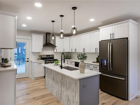10-year tax abatement on this rare find South of Grand! This two-story brick Tudor home has been completely and professionally remodeled - down to the studs! 2,373 total square footage - 5 bedrooms, 3 bathrooms, and a ton of charm. Minutes from downtown. All new electrical/plumbing/HVAC/drywall... the list goes on! Stepping through the half-round front entry door you are greeted with rustic maple floors throughout the main level and master suite. Stone fireplace surround with barn wood mantel encasing a high-end gas fireplace. Kitchen features shaker white cabinets, white subway tile backsplash, upgraded quartz countertops, and a full set of GE slate appliances. 6 stairs to the separated master bedroom suite that has vaulted ceilings, walk-in closet, reading/office nook, and a stunning bathroom! 3 additional bedrooms and a full bathroom upstairs. Lower level suite with large walk-in closet, full bathroom, play/office area. Garage door on front and back, oversized 16x16 deck.