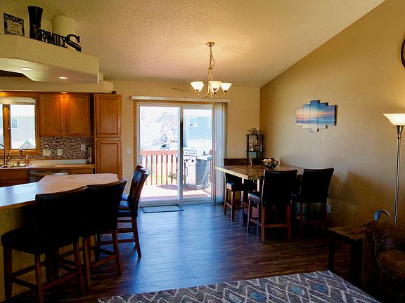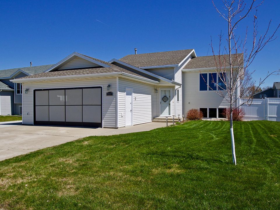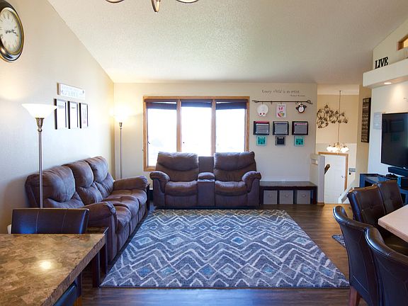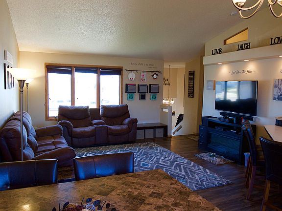 Welcome home to this 4 bedroom, 2 bathroom home close to Ft Lincoln Elementary School. The kitchen includes stainless steel appliances, side pantry and eat at counter that overlooks the living room and dining area. The master bedroom has a walk-in closet & direct access to the full bathroom and one more bedroom across the hall. The lower level has daylight windows, surround sound in the family room, 2 additional bedrooms, full bathroom and laundry area. The fenced backyard has upper and lower deck areas, side patio area and shed. The attached 2 stall garage is heated, insulated and has hot & cold water. Leave the garage door open without insects entering with the full size sliding screens that cover the entrance. Additional space with the parking pad. Updates include newer appliances, flooring throughout, newer furnace and A/C unit.