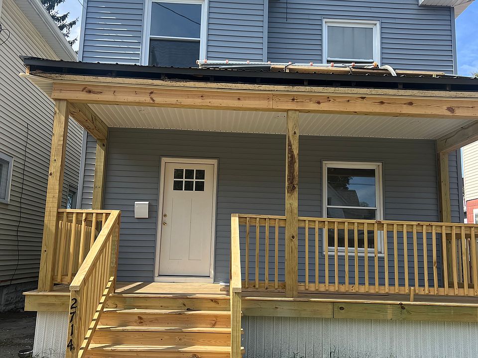 Three bedrooms 2 full baths Private back yard with storage shed Large new wood Porch on front of house All new kitchen Appliances Three bedrooms up with new carpet Freshly painted Basement Laundry hook ups on second floor near bedrooms Family room and dining room on first floor. All bedrooms on second floor 2 updated bathrooms Tenant pays all utilities Pets fees will be added if approved $20 per person application fee One year lease Security deposit first and last month rent You will need proof of income and solid rental history with no eviction for approval Outside smoking only