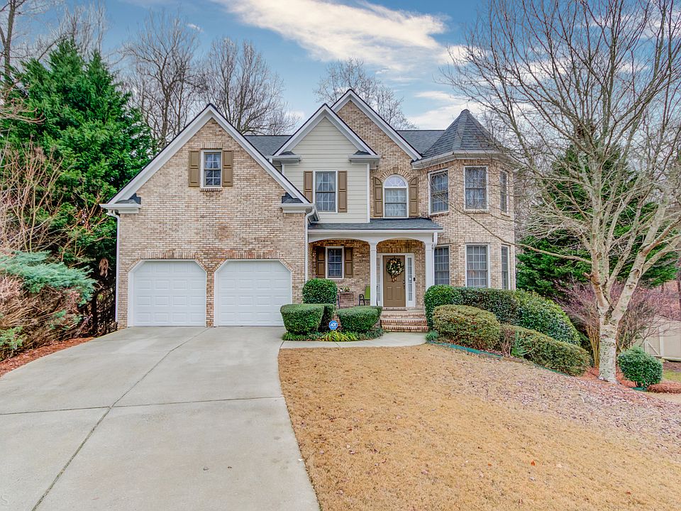 SELLER OFFERING $10,000 IN CLOSING COSTS WITH ACCEPTABLE OFFER. Elegance abounds in this two story plus finished basement home in the sought-after Seckinger High School Cluster (Brand new Artificial Intelligence-themed cluster). Traditional, brick-front home with covered front porch on cul-de-sac in sought after swim/tennis neighborhood. All new LVP flooring and carpet throughout the entire home and newer architectural roof, water heater, appliances, garage doors and wireless security system including monitored smoke detectors and carbon monoxide detectors. Open & bright eat-in kitchen overlooks the soaring two-story great room with fireplace. Spacious entry foyer, living room or office with bay windows, formal dining room & powder room also on the main. Upstairs master bedroom with bay windows, tray ceiling, ensuite with double vanity, private water closet, garden tub, separate shower & spacious walk-in closet. The upstairs is complete with a laundry room, secondary bedrooms each with their own special features & semi-private bathroom. The finished daylight basement has brand new LVP flooring, upgraded molding, cedar closet, unfinished storage areas. Stubbed for plumbing and plenty of space to expand, this basement offers endless potential. From the deck enjoy the privacy of your large backyard with stream running through it. Mature landscape with evergreens and perennial flowering shrubs for low maintenance upkeep. Neighborhood amenities include pool, ALTA dual lighted tennis courts, fenced in playground/park, streetlights and sidewalks. Close to everything: Mall of Georgia, Exchange @ Gwinnett (featuring Top Golf, Andretti's, Sprouts Farmers Market, Pickle Social (coming soon), dining & shopping. Close to I-985, I-85 for an easy commute. Donat miss out on this original owner, well cared for home.