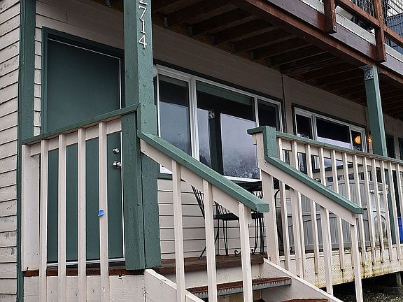 One bedroom, one bath condo with an added private porch and a view of the Gastineau Channel. Fully furnished, turn key ready. In the last 10 months there has been new kitchen countertops, new flooring and paint. This unit's unique features include an owner-added porch, updated appliances, laminate floors in the kitchen and a laundry room right next door, and only one common wall. The reasonable HOAs cover all utilities--even heat. If you are looking for something that will build equity and is less than the cost to rent, this is your place--close to downtown and downtown Douglas, shopping, restaurants, bus lines, and yet quiet and secluded. Will entertain buyer's representative.