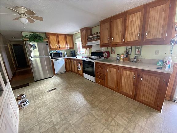 LOOKING FOR MOVE-IN READY? Look no further. Mostly updated 3 bedroom, 2 bath mobile with over 1300sf, and sits on almost 2 acres. This home is turn key and very affordable. Home is well kept and has new roof and updated electric. Right in Homosassa, FL, on a paved street and quiet neighborhood with great neighbors. Property has two sheds. Both have their own electric and one is being used as a she shed but could be an office or workshop with it's own power. Just planted new shrubs and trees throughout lot. Home has open kitchen with all custom cabinetry. Build-ins throughout and a very large lot. This one won't last long and is priced for any family's budget. Take a look and see for yourself.
