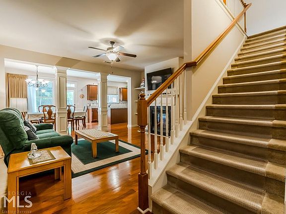 Beautiful Townhouse backs up to a wooded area for privacy! Gated Community, within walking distance to shopping centers, restaurants and convenient to I-85. Home is as neat as a pin and has been very well cared for! Beautiful Kitchen with Granite Counter-tops, huge island and all kitchen appliances stay. Master bedroom with vaulted ceilings and offers a huge sitting room. Two other upstairs bedrooms are large in size. There is a loft that could be used as a media room and/or office/playroom. This home has never had any pets or had smokers. Tons of natural light!