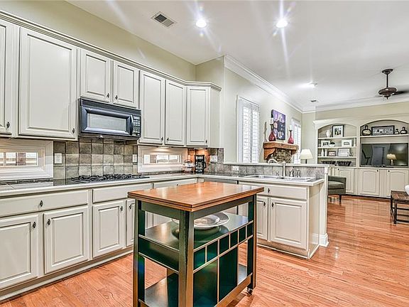 - Kitchen Features: Cabinets White, Stone Counters, View to Family Room