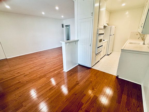 Mid-Century modern 2-bed, 1-bath in a gated building with covered parking and quiet courtyard. Rear unit for privacy. Oak floors, tile kitchen, crown molding, dimmable lighting, formal dining, bright all-white kitchen with vintage touches. A/C in every room. Walk-in closet. Second bedroom ideal for office or creative space.