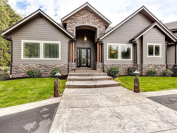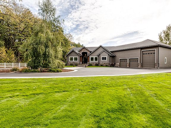 Impressive finishes with attention to detail inside and out in this custom build. Expansive travertine tile entry with fountain. Great room with wood fireplace and custom stairwell leading to a theater room. Adjoining bonus/exercise room. Open kitchen with granite counters, eating bar and nook. Covered outdoor entertaining w/gas bbq, sink eating bar and propane fireplace overlooking pond.3 car garage with shop and RV bay.