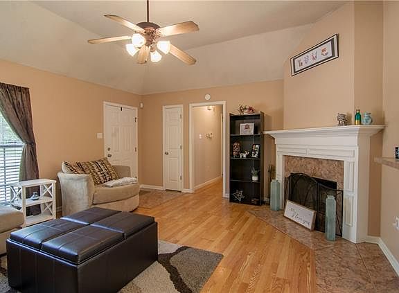 Cute, cute, cute home on a large lot on quiet street; roomy living room with vaulted ceiling, corner fireplace; Sunny kitchen with dining area, breakfast bar; spacious master w/tray ceiling; large, lovely backyard with wooded view; laminate wood floors & tile throughout ??? NO CARPET; covered carport; great location for schools, shopping and access to Interstate for commuting!